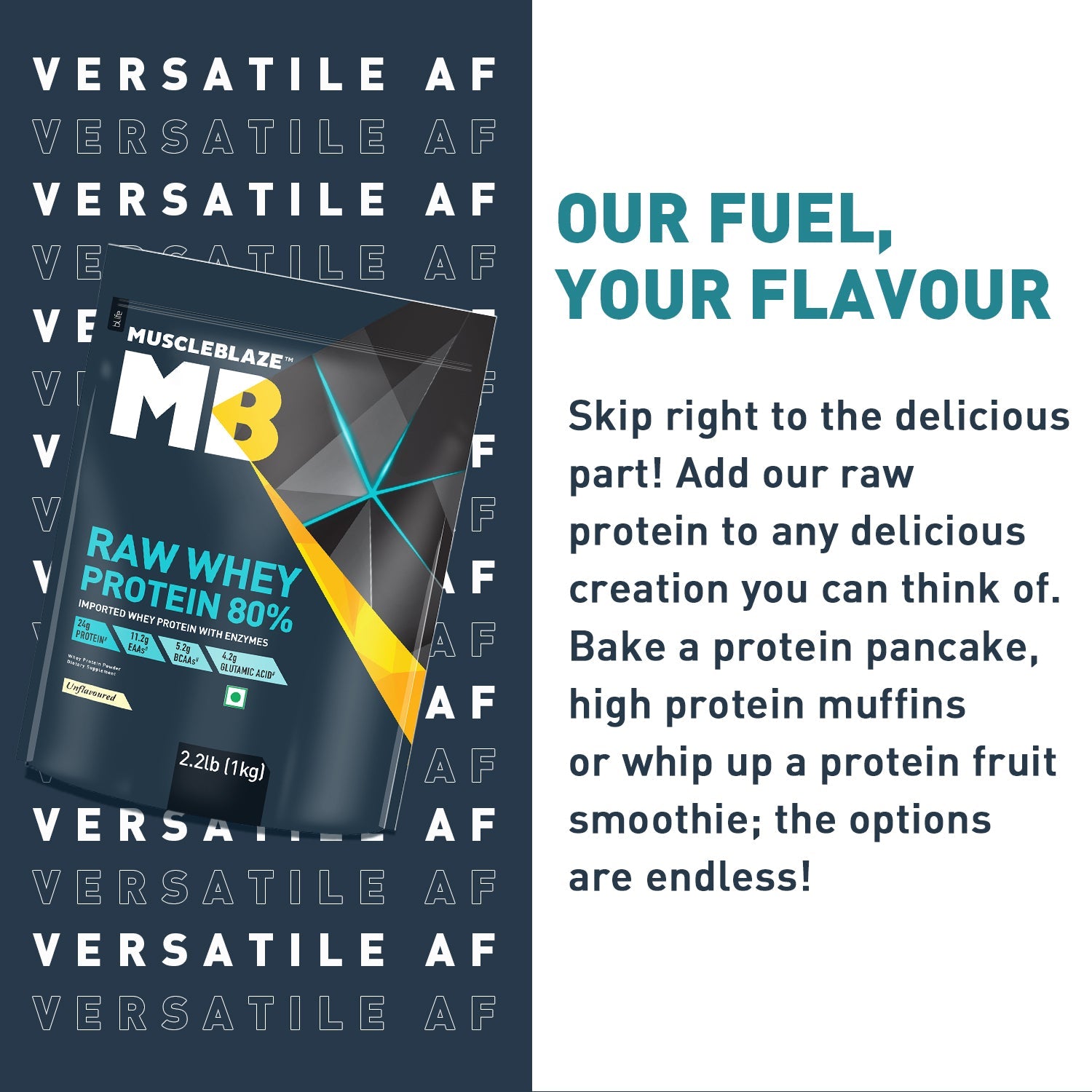 - FUEL WITH FLAVOUR FLEXIBILITY: MB Raw Whey protein offers you gains with the liberty to choose how to attain them. This is an unflavoured whey protein with a neutral taste minus any added sugar - giving flexibility to consumers to use it as per individual desires. Whether done conventionally or creatively, the results will be game-changing.