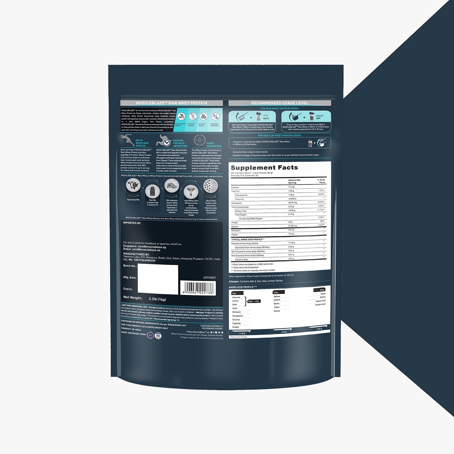 - WHEY THAT RE-DEFINES PURITY: MuscleBlaze Raw Whey Protein is a muscle-making supplement that boosts gains by offering you the purest and extremely potent form of protein. Sourced (imported) from only the best quality milk and devoid of any additives, every scoop of this whey elevates your protein intake by 24 g, preserving all the essential nutrients.